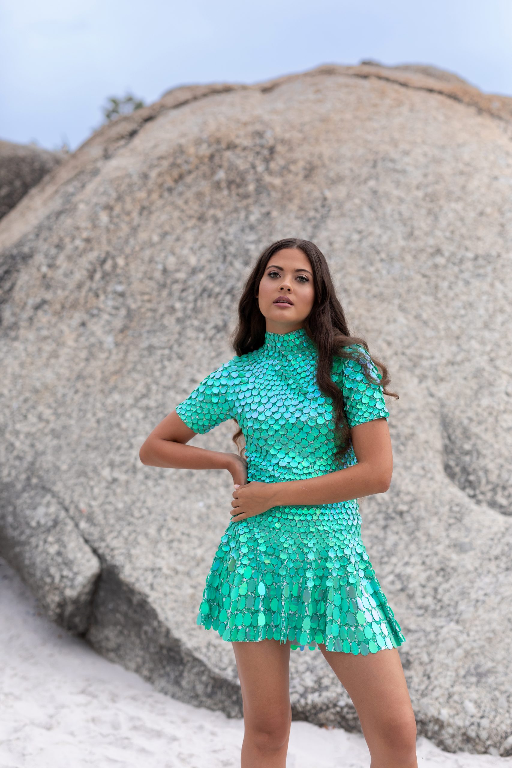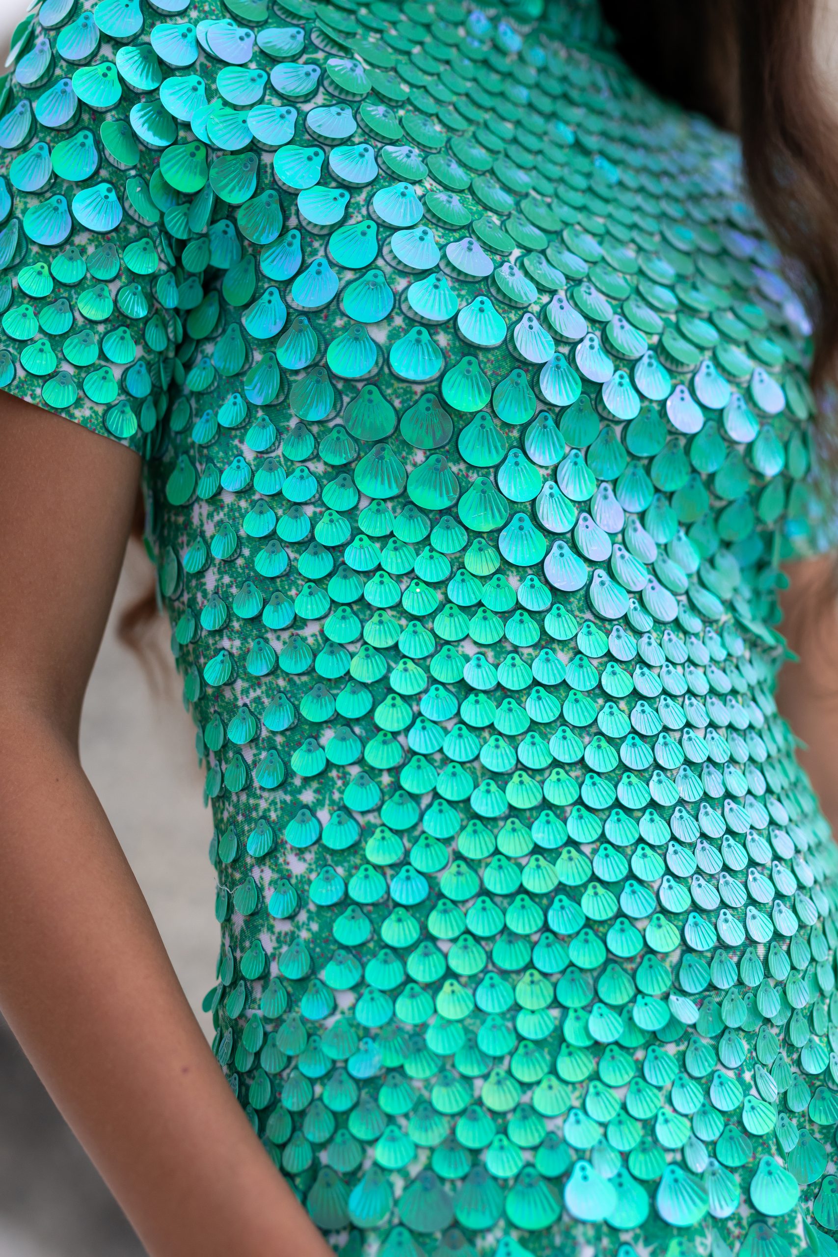 Discover the Aurora iridescent green sequin dress – your statement piece inspired by the shimmer and swirl of the northern lights. Every inch of this magical dress is covered in iridescent green sequins, catching the light with every twirl and movement. It sparkles like a sky full of stars and glows with whimsy, charm, and confidence.